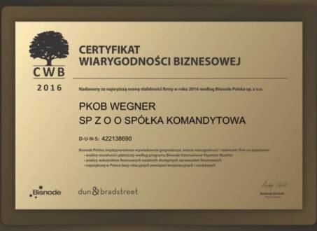 PKOB WEGNER besitzt das Zertifikat für geschäftliche Glaubwürdigkeit. Es ist eine prestigeträchtige Auszeichnung, die nur Unternehmen erhalten können, die streng definierte Kriterien erfüllen.